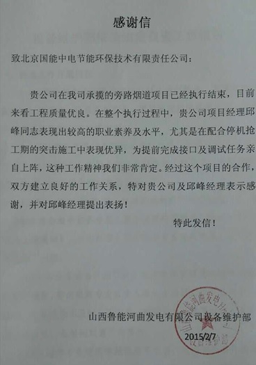 當前位置: 國能中電公司動態> 山西河曲EPC項目受業主贊譽
