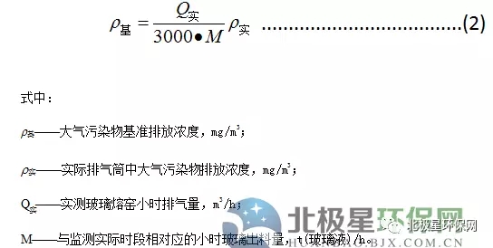 1.5 純氧燃燒玻璃熔窯應(yīng)監(jiān)測排氣筒中大氣污染物排氣濃度、排氣量及相應(yīng)時(shí)間的玻璃出料量,按式(2)計(jì)算基準(zhǔn)排放量[3000m3/t(玻璃液)]條件下的基準(zhǔn)排放濃度。并以此作為判定排放是否達(dá)標(biāo)的依據(jù)。大氣污染物排放濃度、排氣量、產(chǎn)品產(chǎn)量的監(jiān)測、統(tǒng)計(jì)周期為1h,可連續(xù)采樣或等時(shí)間間隔采樣獲得大氣污染物排放濃度和排放氣量數(shù)據(jù),玻璃出料量數(shù)據(jù)以企業(yè)統(tǒng)計(jì)報(bào)表為依據(jù)。