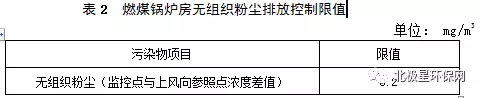 2、燃煤鍋爐配套堆場應(yīng)采取封閉措施,燃煤鍋爐房無組織粉塵濃度執(zhí)行表2的規(guī)定。