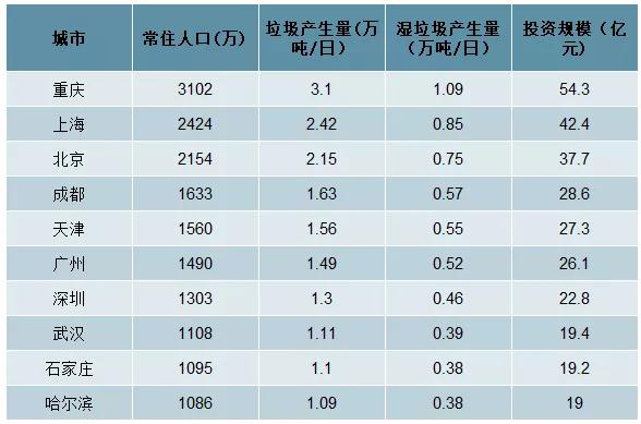重點城市濕垃圾處理投資估算